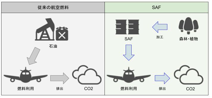 SAFは従来のジェット燃料と比べてライフサイクル全体でCO₂排出量を最大約80%削減できるとされ、国際的な温室効果ガス削減の切り札と位置づけられています。